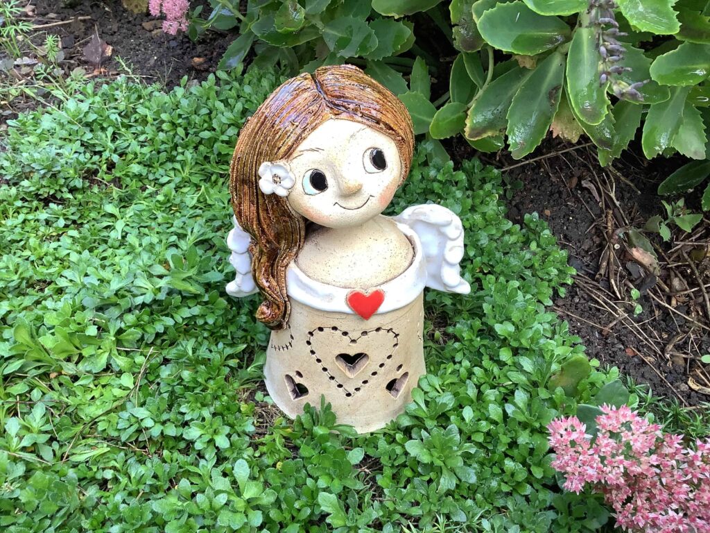 Lampičku využijí především milovníci svíček a světýlek. Andělka je ručně vytočená na hrnčířském kruhu a poté domodelovaná ručně. Má srdce na lemu šatů a ve vlasech. Její tělo je děrováno dekorem srdíček a teček, kterými při zapálení svíčky krásně proniká světlo. Můžete vybírat z různych variant po kliknutí na tlačítko "koupit". Andělku si kupujete tu, kterou si zvolíte ve variantě.