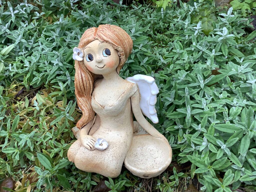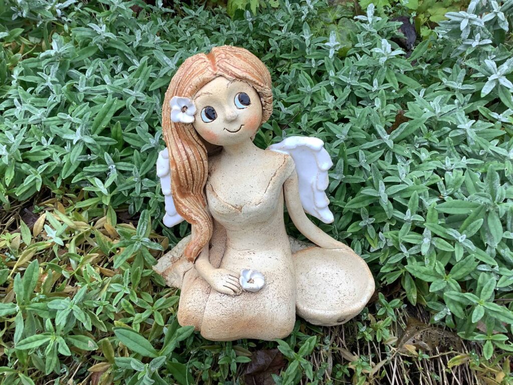 Klečící Andělka s květem jasmínu je symbolem něhy a souznění. Drží také mističku do které můžete umístit čajovou svíčku, která dodá domácí pohodě tu správnou atmosféru 🙂