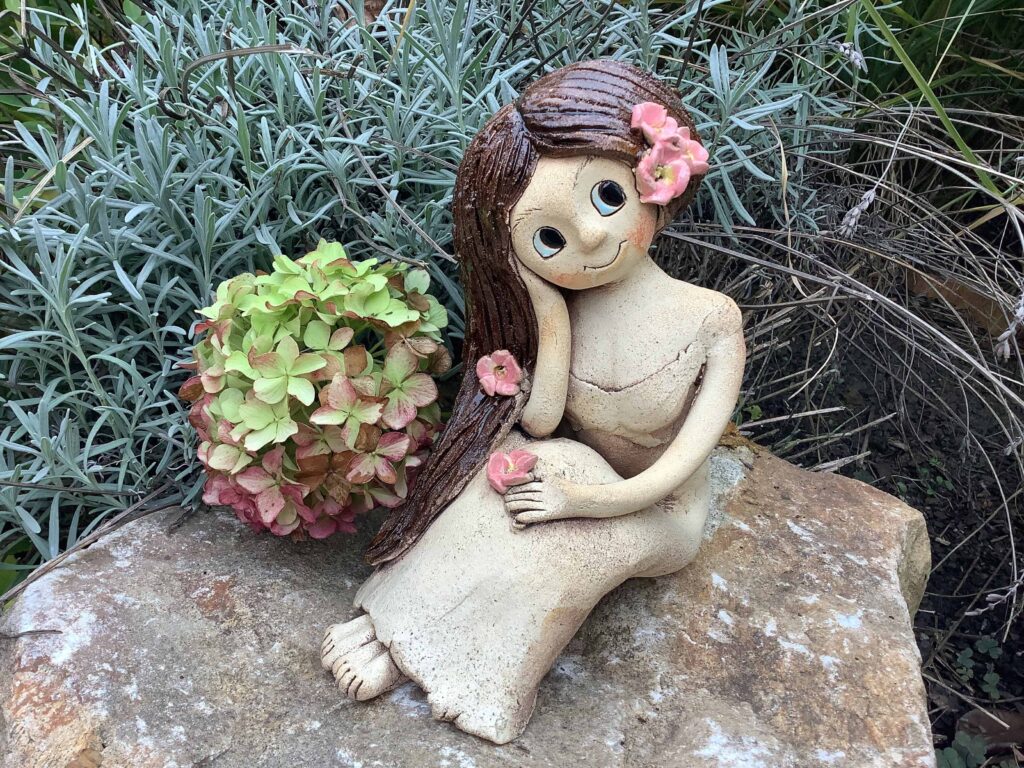 Vysoká 18 cm šířka podstavy Růžová i samotná “divoká růže” symbolizuje něžnou lásku a romantiku. Její vlasy vždy zdobí věneček růžových kvítků a stejně tak jej drží v dlaních. Víla má zelenkavou sukýnku a holé nožky. Tato víla zjemní váš prostor, navodí pokoj a klid vašeho domova, stejně tak její přítomnost oceníte i na terase nebo v zahradě Vysoká je cca 18 cm
